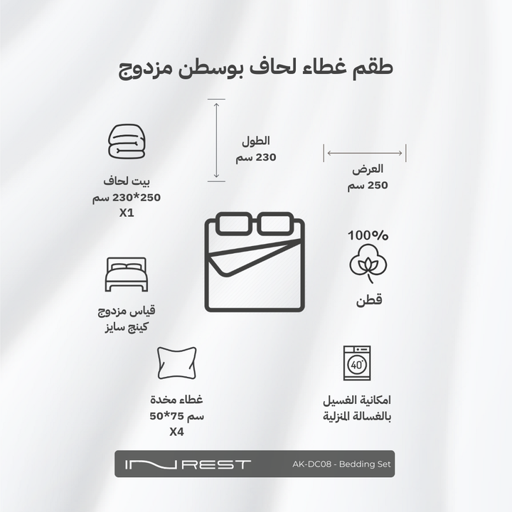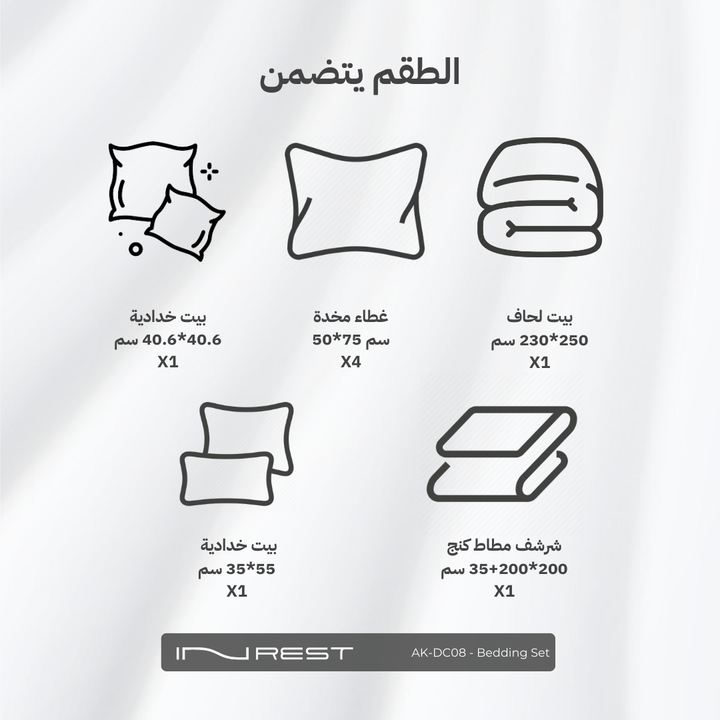 متوفر بمقاس الكنج ويحتوي على 8 قطع وهي :