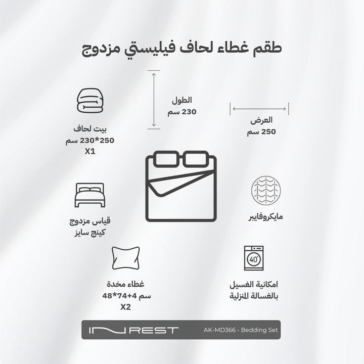 يتميز طقم غطاء لحاف فيليستي بتصميم عصري وأنيق يناسب جميع ديكورات غرف النوم. مع قياس كينج سايز (230x250 سم)، يمنحك هذا الطقم مظهرًا جذابًا ومتناسقًا لسريرك، مما يعزز من جمالية مساحتك الشخصية