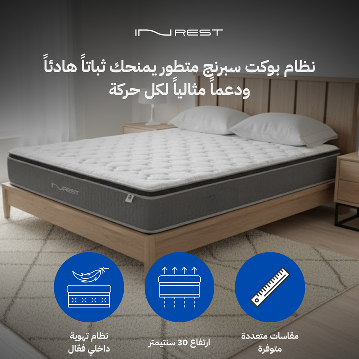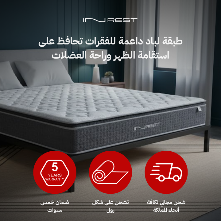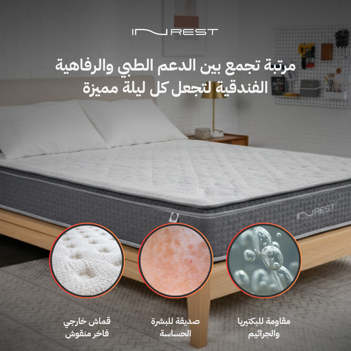 Experience a new level of luxury with the INREST IR22 Mattress, designed to combine premium hotel comfort with comprehensive orthopedic support that maintains spinal alignment and ensures a deep, undisturbed sleep.